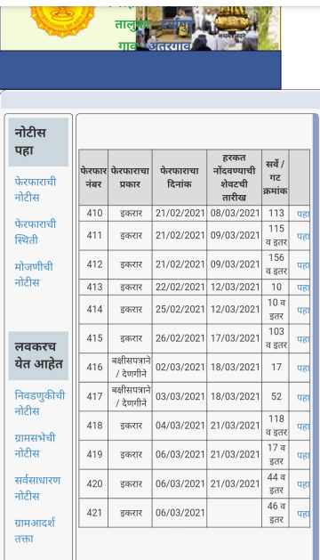 मित्रांनो तुम्ही ही अशा पद्धतीने तुमच्या गावातील तलाठ्याचे सर्व जमिनीचे फेरफार व जमिन मोजणीचे व्यवहार हे अशा पद्धतीने ऑनलाईन पाहू शकता.