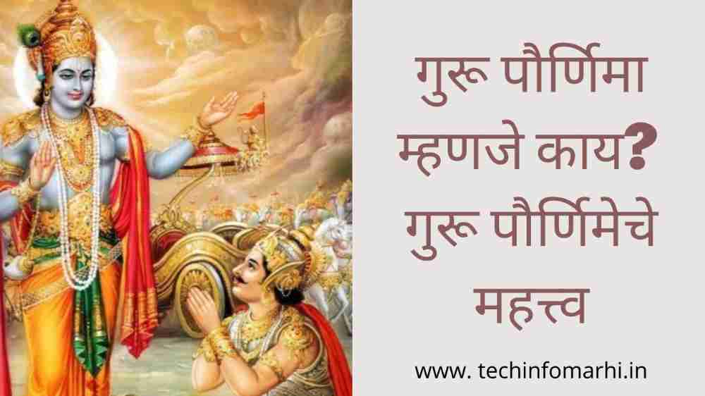 गुरु पौर्णिमा माहिती आणि महत्व(guru purnima in marathi) गुरु पौर्णिमा 2022 माहिती आणि महत्व Guru Paurnima 2022 Mahiti Marathi आपली भूमी ही संतांची भूमी आहे. आपल्या देशा मध्ये गुरु ला ब्रह्मा, विष्णु, महेश म्हणजेच देवांची उपमा दिली जाते. आपल्या जीवनात चांगला गुरू लाभणे हे एक चांगले कर्म समजण्यात येते. गुरू आपल्याला जीवनात प्रत्येक गोष्टीत मार्गदर्शन करत असतात. आजच्या या पोस्ट मध्ये आपण गुरु पौर्णिमा 2022(Guru Paurnima 2022 mahiti marathi) पाहणार आहोत. गुरू पौर्णिमा हा एक महत्वपूर्ण असा सण आहे.Guru Paurnima information Marathi गुरु म्हणजे अशी व्यक्ती जी दगडा सारख्या माणसाला मूर्ती बनविण्याचे कार्य करते.